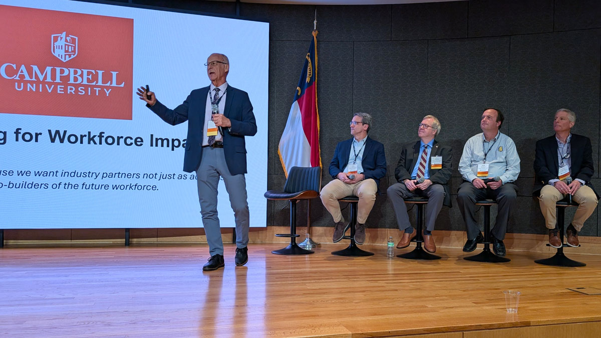 Charles Carter, Pharm.D., chairman of the Department of Pharmaceutical and Clinical Sciences at Campbell, described a new strategic plan that places workforce alignment at the center of the university's direction. Campbell is developing a fully online master's program in CMC administration and AI-driven quality leadership, built around what Carter called "Pharma 4.0" principles, with stackable credentials shaped directly by industry input.